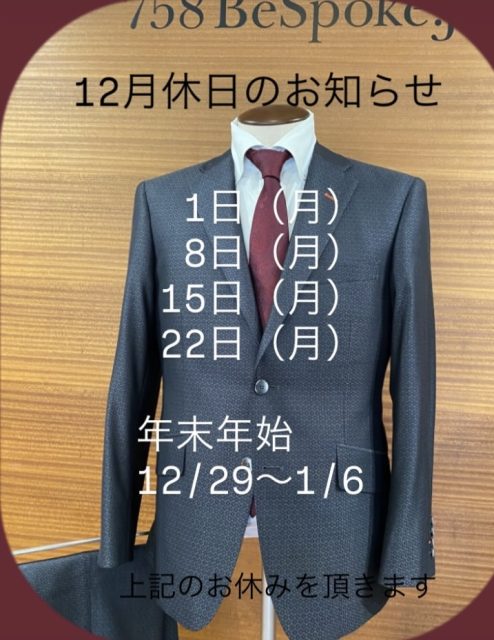名古屋ビスポーク・J<年末年始のお休みのお知らせ>